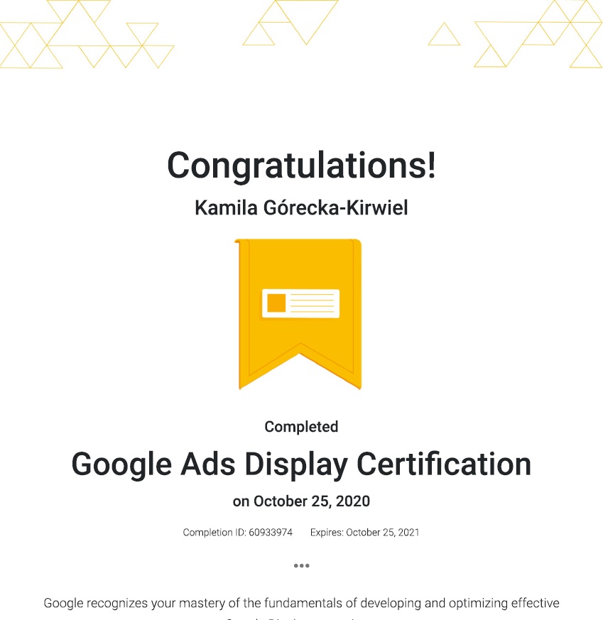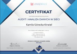 Nieustannie szkolimy się i rozwijamy, by być na bieżąco z nowymi rozwiązaniami i mieć zawsze najlepszą wiedzę o skutecznych narzędziach marketingowych. Oto niektóre z posiadanych przez nas certyfikatów.
