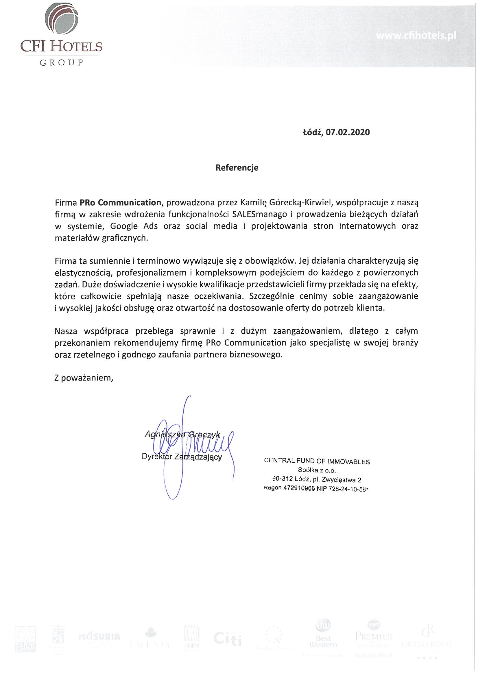 refefencje CFI Hotels Group